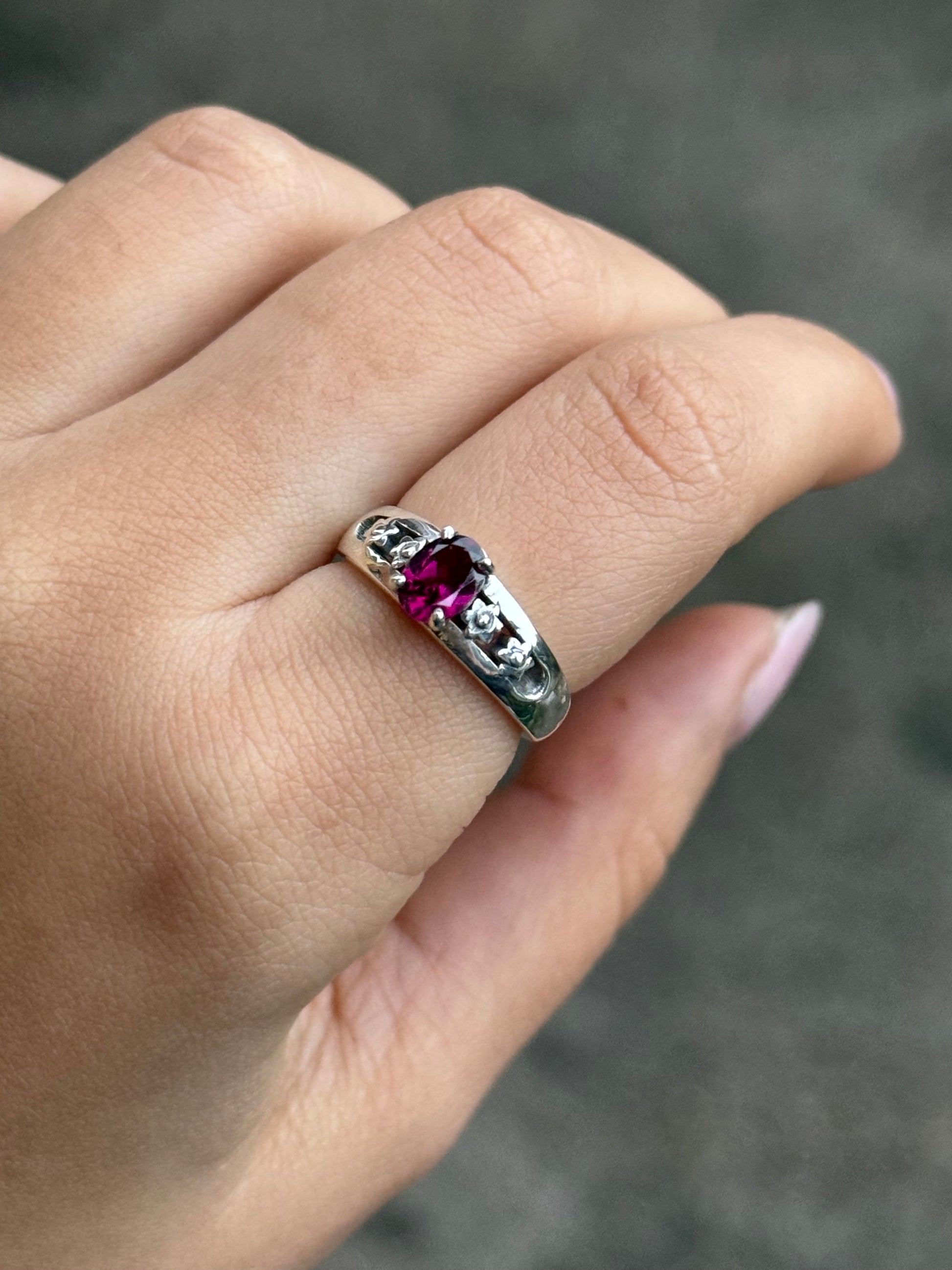 The "Eride" ring is a masterpiece of elegance and naturalness. Its curved band provides the perfect frame for the four small flowers that bloom along its surface.